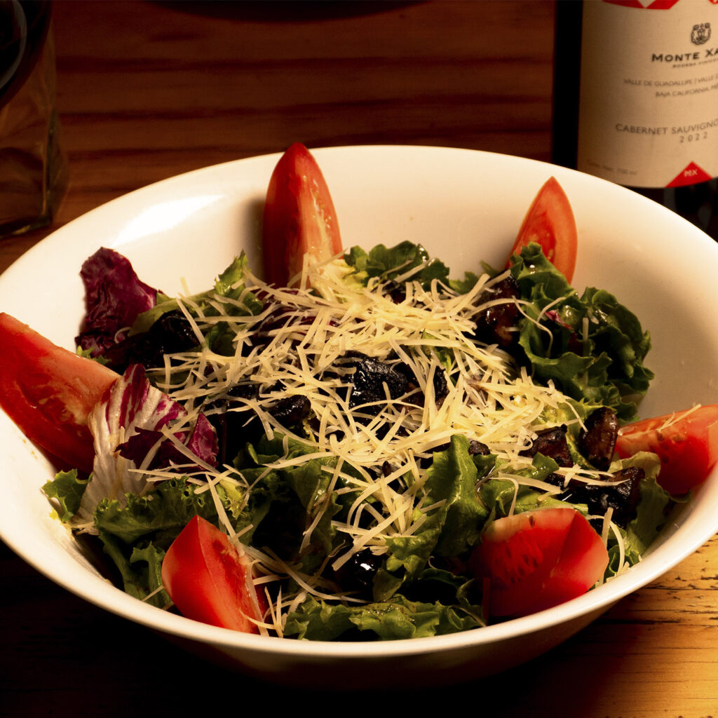 Lechuga mixta, jitomate fresco, portobello, aderezo Italiano y parmesano, vinagreta balsámica.