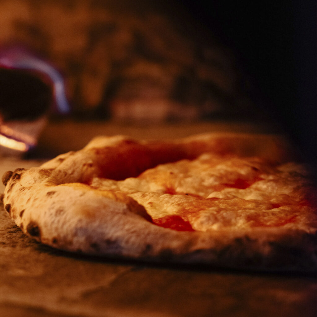 Salsa pomodoro, mozzarella, salamino, portobello aceituna y ajo.